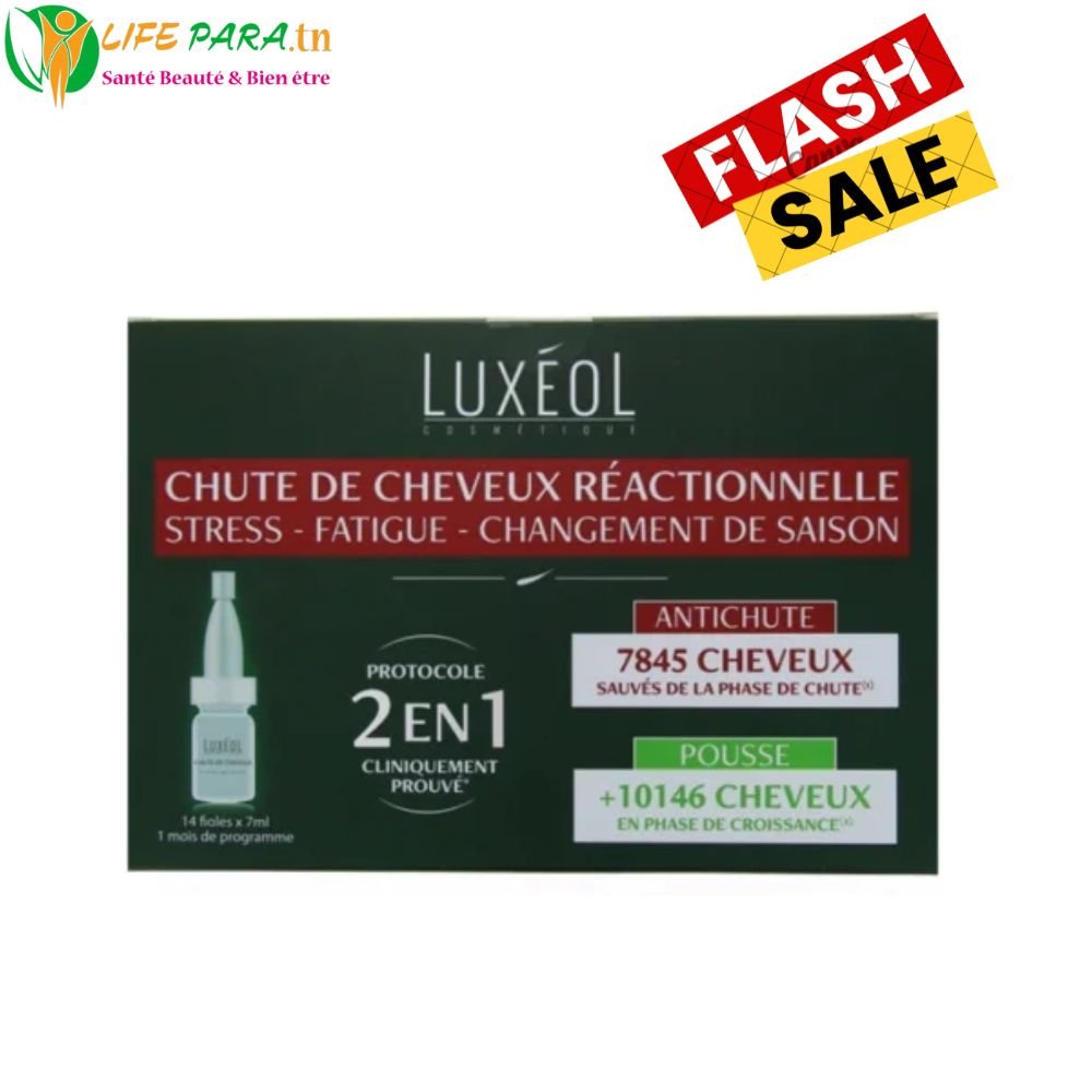 Luxeol Chute de Cheveux Réactionnelle 2 en 1 est un traitement capillaire intensif conçu pour aider à réduire la chute de cheveux d’origine réactionnelle (due au stress, à la fatigue, aux changements saisonniers ou aux déséquilibres passagers). Sa formule associe des actifs nutritifs et stimulants pour renforcer le cuir chevelu et améliorer l’apparence des cheveux.