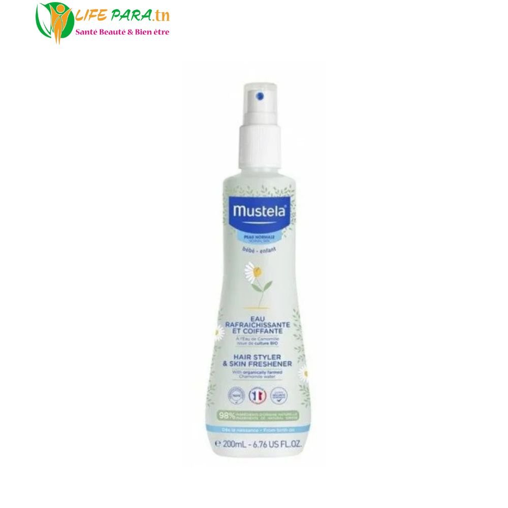 Mustela Eau Rafraîchissante et Coiffante est une eau délicatement parfumée spécialement conçue pour rafraîchir, parfumer et coiffer en douceur la peau et les cheveux des bébés et des enfants dès la naissance. Sa formule douce respecte la peau sensible et les cheveux fins, tout en facilitant le coiffage au quotidien. Elle laisse la peau douce, les cheveux souples et délicatement parfumés, sans dessécher.